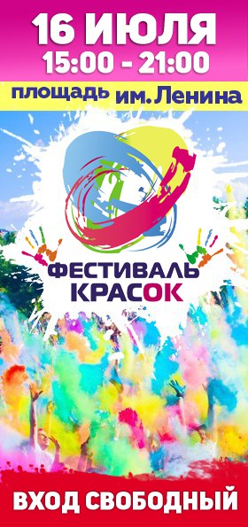 Вход свободный. Место и время проведения: 16 июля на площади им.Ленина с 15:00 до 21:00.