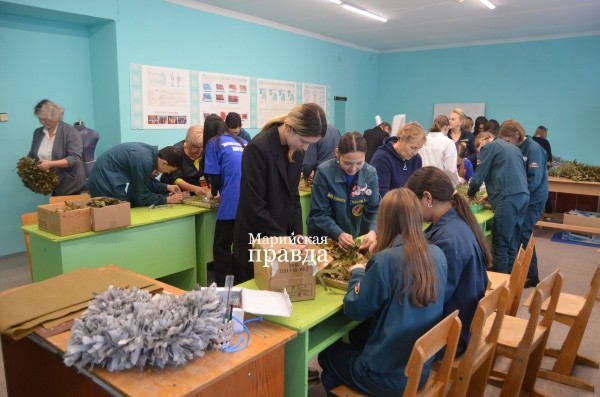Многие, наверное, видели такие лохматые накидки на касках военнослужащих. С одной стороны, они помогают ребятам сливаться с окружающей местностью, с другой, это хорошее укрытие от дронов, поскольку шлемы с такой защитой не бликуют. В общем, два в одном. Вещь на фронте чрезвычайно полезная, поскольку реально помогает сохранить жизни и здоровье наших солдат. По словам завуча школы Светланы Мельниковой, наши «кикиморы» защищают русских бойцов от вражеской «бабы яги», то есть дронов.