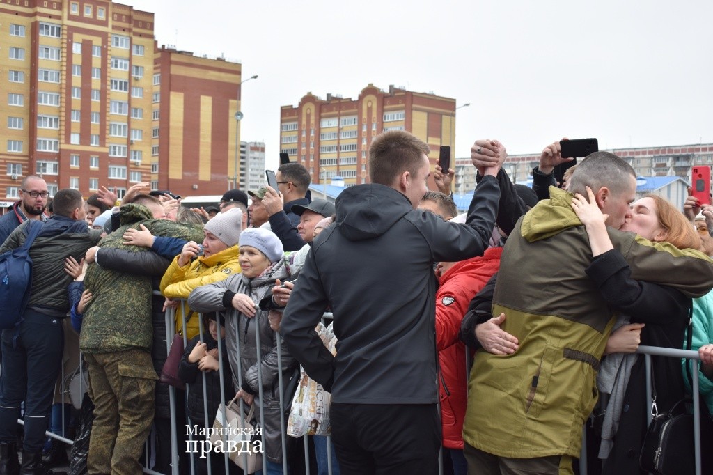 По словам представителя военного комиссариата Марий Эл Андрея Кулишова, 30 сентября состоялась "крайняя отправка" (как в спорте, так и в армии не любят слова «последняя») ─ отправились в военную часть около 300 мобилизованных. Глядя на то, как их провожают родные, на глаза наворачиваются слезы, но тем не менее, каждый знает: вернутся бойцы ─ обнимут еще крепче.