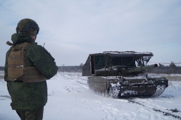 Капризы январской погоды не отвлекают от работы военнослужащих: внутри машины поддерживается комфортная температура. Здесь каждый знает свое дело. Командир проверяет средства связи, оператор-наводчик настраивает систему наведения. Механик-водитель запускает газотурбинный двигатель, не требующий долгого прогрева, поэтому не более чем через пару минут танк начинает движение.
