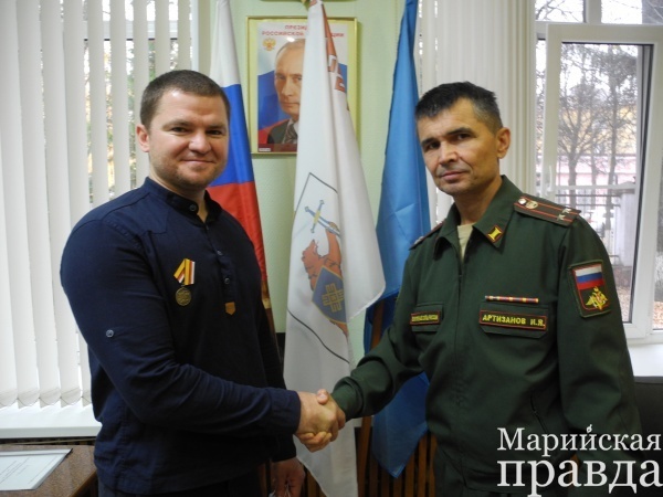Медали «Участнику военной операции в Сирии» вручили в городском военкомате двум рядовым запаса, бывшим контрактникам из Йошкар-Олы.