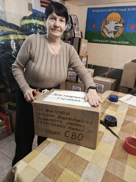 Все эти годы его мама находится в сообществе волонтеров «Нить Добра», что при администрации города Волжска. Их уже более 170 человек, которые в общем деле имеют свои определенные обязанности. В числе жен и матерей, возраст которых очень разный, кто-то изготавливает окопные свечи, кто-то вяжет теплые вещи для солдат или плетет маскировочные сети. В обязанности Татьяны входит упаковка гуманитарного груза, который регулярно отправляется бойцам в воинские подразделения. Чаще всего они именные, о чем говорят надписи позывных бойцов.