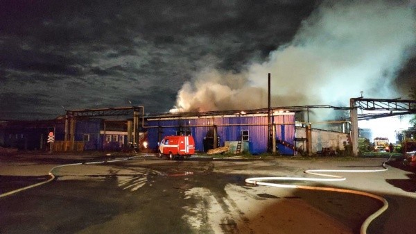 Об огне, возникшем на деревообрабатывающем предприятии, дежурным сообщили в 22.14. Выяснилось, что возгорание на территории предприятия обнаружил находящийся там охранник. Так как очаг находился в области кровли, по деревянным перекрытиям огонь быстро охватил значительную её площадь.