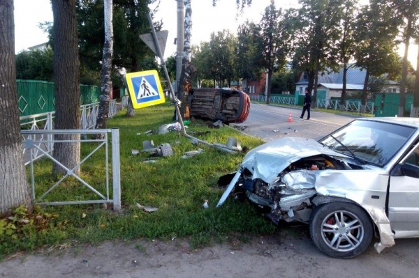 От столкновения иномарка наехала на препятствие и перевернулась. В ДТП пострадали два пассажира «четырнадцатой» и один пассажир иномарки. Они доставлены в больницу.