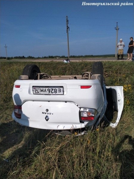 ДТП произошло около 14.30 на 8 км объездной дороги поселка Новый Торъял . 51-летняя женщина на Renault  не справилась с управлением автомобилем на скорости и съехала в кювет. Машина опрокинулась и травмы получили женщина-водитель и еще четыре пассажирки Renault 30, 52, 54 и 75 лет.