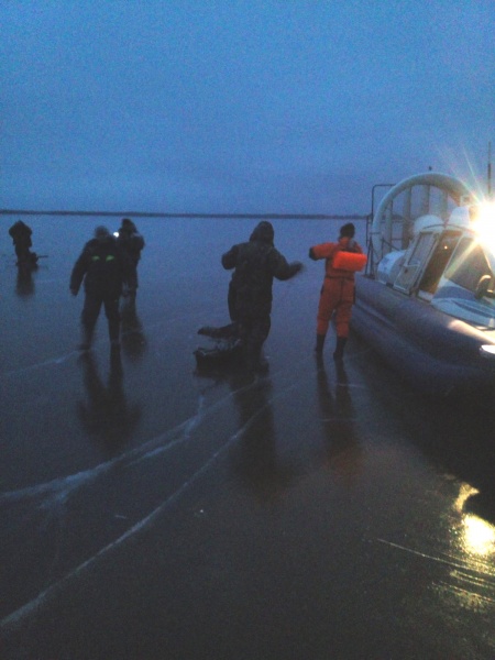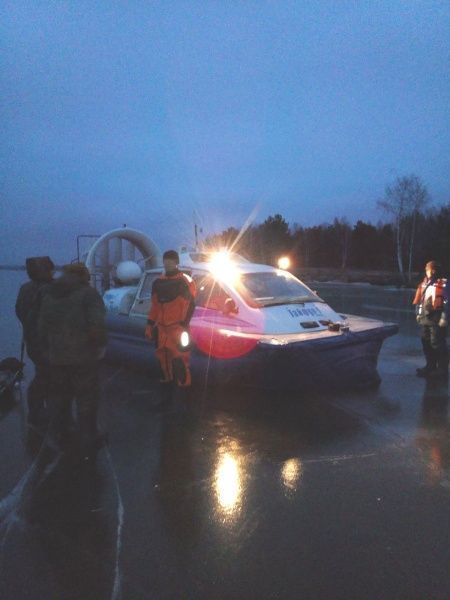 Оперативная группа Козьмодемьянского аварийно-спасательного отряда отправилась на место происшествия на судне на воздушной подушке. Требовалось как можно скорее добраться до терпящих бедствие, чтобы эвакуировать пострадавших на берег, пока трещина в ледяном покрове реки не пошли дальше.