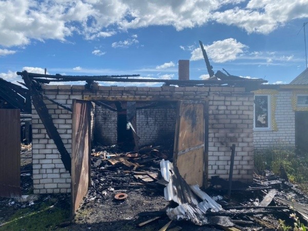 Огнеборцы потушили пожар, не дав огню распространиться на жилой дом. В результате пожара огнем уничтожен гараж, поврежден дом и баня. Пострадавших нет.
