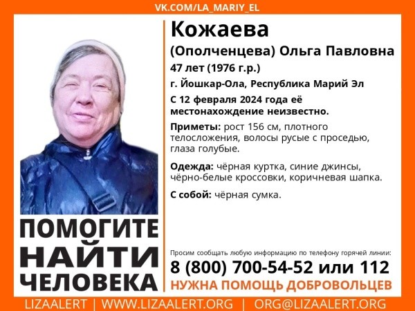 Местонахождение 47-летней Ольги Павловны Кожаевой (Ополченцевой) неизвестно с 12 февраля.