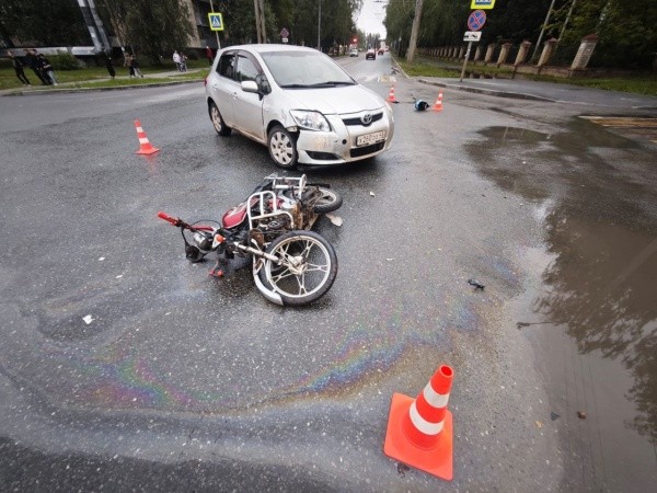 Toyota и мопед, за рулём которого был 16-летний подросток, столкнулись на перекрёстке улиц Карла Либкнехта и Зои Космодемьянской около 18:10. Несовершеннолетний получил травмы, его доставили в больницу.