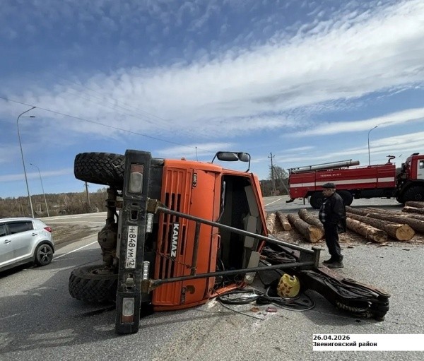 Утром в воскресенье, 26 апреля, в Звениговском районе случилось ДТП с участием тяжелого грузового автомобиля. На 32-м километре трассы Кокшайск – Красногорский 41-летний водитель КамАЗ-6426 с прицепом не справился с управлением.