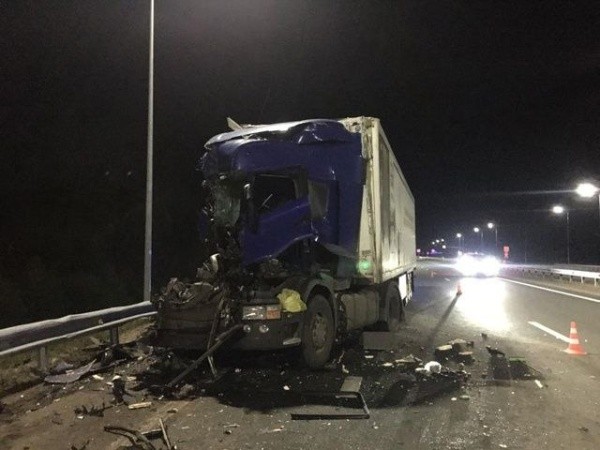 54-летний водитель грузовой автомашины Scania с полуприцепом, по предварительным данным, не выбрал безопасную дистанцию и столкнулся с движущимся в попутном направлении грузовиком MAN, под управлением 51-летнего мужчины.