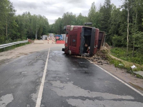 По предварительным данным, около 16:45 водитель грузовой Howo не выбрал безопасную скорость движения, не справился с управлением и опрокинул грузовик.