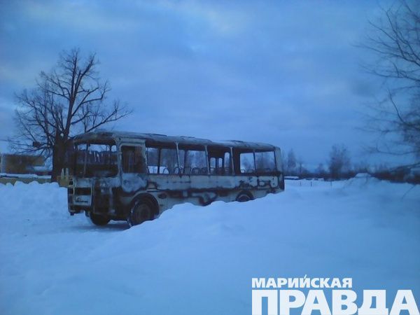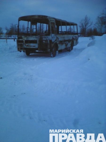 - Вчера загорелся пассажирский пригородный автобус, который  выезжает из Йошкар-Олы в 12.10, а из Пуяла - в 13.00. Он начал начал гореть прямо на ходу. Рассказывают, что возгорание произошло от искры из двигателя. Автобус успел отъехать от Пуяла лишь на 2 км, и уже случилось ЧП. В это время в автобусе находились 2-3 пассажира, все они успели выйти. Но автобус сгорел полностью. Фото сделаны не на месте происшествия, транспорт уже убрали с проезжей части, чтобы сгоревший остов не мешал движению, - рассказывает Мария.