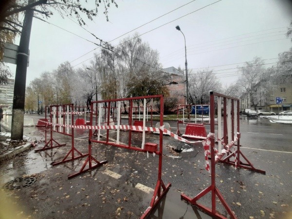 В настоящее время место провала огорожено. Здесь установлены предупреждающие знаки. Поэтому около дома 35 по улице Панфилова движение транспорта ограничено.