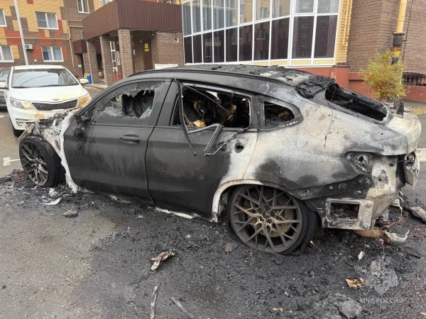 Специалисты государственного пожарного надзора провели осмотр места происшествия и установили, что причиной пожара стал умышленный поджог. По предварительным данным, владелице автомобиля, девушке 1999 года рождения, в период с августа по сентябрь 2025 года поступали угрозы. После просмотра записей камер наружного наблюдения установили, что неизвестный молодой человек в капюшоне и маске облил припаркованный автомобиль горючей жидкостью и поджег его. BMW X4 был полностью уничтожен. Кроме того, повреждена стоявшая рядом машина.