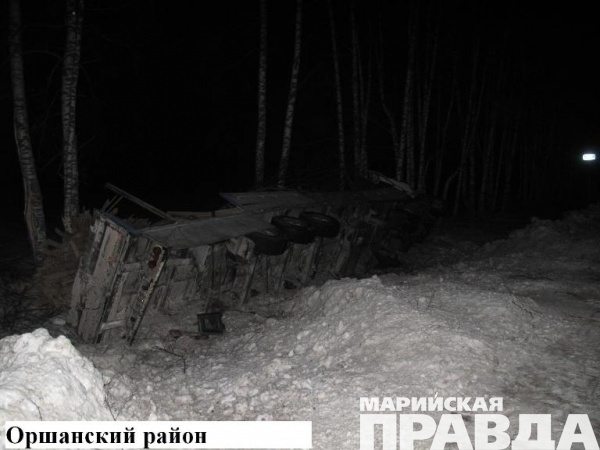 - Ночью 25 января в Оршанском районе Марий Эл произошло ДТП, в котором пострадал 49-летний водитель грузового автомобиля. По предварительным данным, на 124-м километре автодороги «Вятка» мужчина за рулем грузовика «Рено» (Renault) с полуприцепом не рассчитал скорость в непростых дорожных условиях. Это привело к тому, что шофер не смог справиться с управлением тяжелым транспортным средств и грузовик съехал в кювет, после чего опрокинулся. С травмами водителя отправили в больницу, где он проходит лечение, - сообщает группа по пропаганде безопасности дорожного движения УГИБДД МВД по Марий Эл.