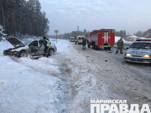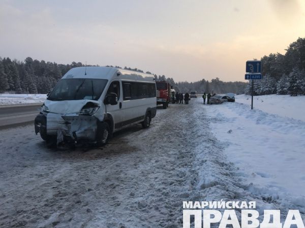 Сегодня, 23 декабря, под Йошкар-Олой произошло столкновение легковой иномарки и микроавтобуса. В больницу доставлены шесть человек, в том числе четверо пассажиров, находившихся в общественном транспорте.