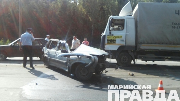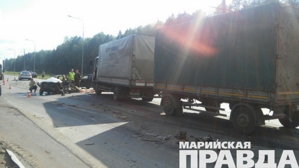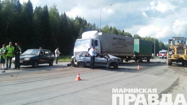 - Под Йошкар-Олой, на территории Медведевского района Марий Эл, сотрудники полиции устанавливают обстоятельства ДТП с участием четырех автомобилей. Столкновение произошло сегодня, 23 июня, в 15.10, на 87 км автодороги «Вятка». Участниками ДТП стали два легковых автомобиля - ВАЗ-2109 и ВАЗ-2115 и два грузовых - «КамАЗ» и «МАЗ». По предварительным данным, от травм, полученных при ударе во время столкновения автомобилей, погиб водитель автомобиля ВАЗ-2115, - рассказали в группе по пропаганде безопасности дорожного движения УГИБД МВД по Марий Эл.