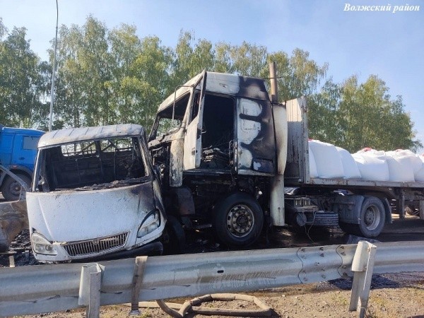 По данным УГИБДД МВД по Марий Эл, авария случилась около двух часов дня на 91 км автодороги «Йошкар-Ола – Зеленодольск».  36-летний водитель ГАЗ, при движении по регулируемому светофорами перекрестке, выехал на красный свет. Такая поспешность закончилась столкновением с грузовой автомашиной МАЗ с прицепом. Автомобили загорелись. В больницу с травмами попал водитель ГАЗ.