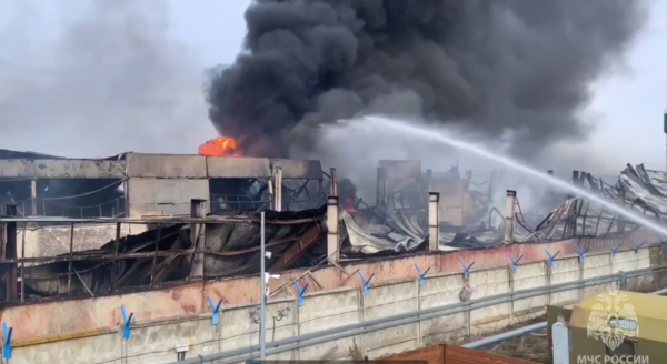 Пожар произошёл сегодня около 12 часов на территории предприятия по изготовлению пластмассовых плит в посёлке Приволжский в Марий Эл.