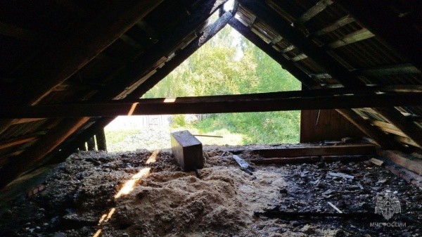 Прибывшая в деревню группа 34-й пожарно-спасательной части ликвидировала угрозу. Стихия повредила крышу, сейчас сотрудники МЧС выясняют причину случившегося.