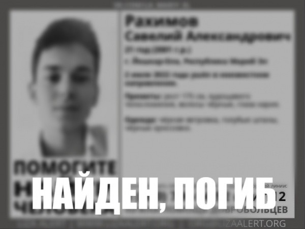 В Йошкар-Оле найден погибшим парень, который 2 июля ушел в неизвестном направлении. 21-летний Савелий Рахимов ушел из дома в неизвестном направлении и не вернулся.