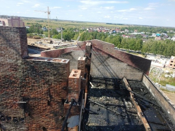 Спасателям сообщили о горящей крыше строящегося здания в 10:17. Спасатели нескольких пожарных частей приехали на ликвидацию огня.