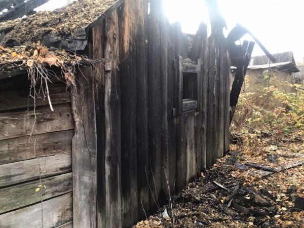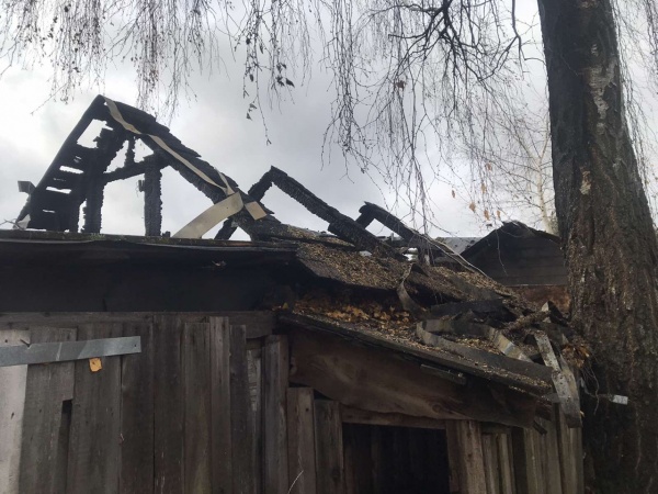 Огнем повреждена крыша постройки, а вот имущество удалось отстоять.