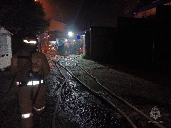 В 00:12 в пожарную охрану поступило сообщение – очевидцы заметили языки пламени и клубы дыма, исходящие из ангара на улице Ленинградской.