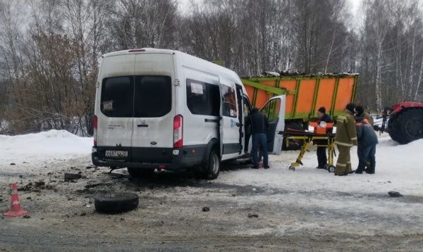 На дороге столкнулись трактор с прицепом и микроавтобус. Авария произошла сегодня в 11.45.