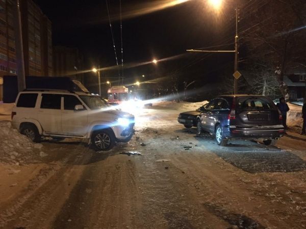 У дома № 56 на улице Машиностроителей в Йошкар-Оле сегодня, 19 февраля, столкнулись три автомобиля: Honda, УАЗ Patriot и «четырнадцатая».