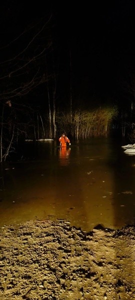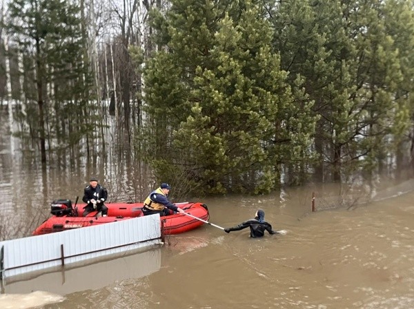 На место происшествия незамедлительно выдвинулась дежурная смена. Прибыв к границе разлива, спасатели обнаружили, что до затопленного участка нужно преодолеть около 900 метров по воде. Сильное течение талых вод существенно осложняло ситуацию.