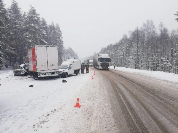 Авария произошла в пятницу, 4 февраля, около 12.20 на 64-м км автодороги «Йошкар-Ола – Зеленодольск».  40-летняя женщина, управляя автомобилем "Kia", в сложных погодных и дорожных условиях, при обгоне движущегося впереди транспортного средства выехала на встречную полосу, не справилась с управлением и совершила столкновение с двигавшимся во встречном направлении грузовиком, который затем врезался в автомашину "ВИС-234900".