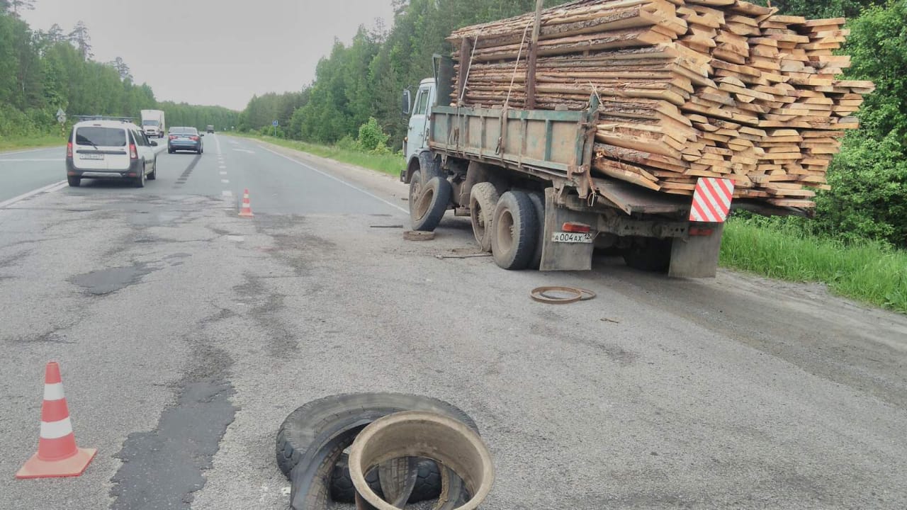 Как выяснилось позднее, в тот день на дороге произошло следующее. Водитель КамАЗа подкачивал колесо, когда из него вылетело стопорное кольцо и попало в мужчину, серьезно травмировав его.