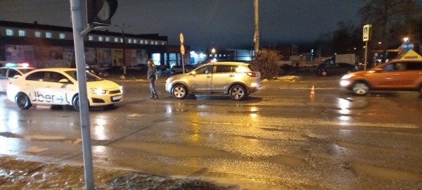 Авария произошла около 15.45 у дома № 36 на улице Соловьева. Водитель Kia сбил пешехода, который, по предварительным данным, перебегал проезжую часть вне пешеходного перехода на красный свет.