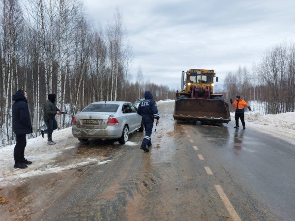 Тем временем сотрудники дежурной части МО МВД России «Медведевский», переживавшие за судьбу малыша и его родителей, вызвали на подмогу специальную технику с Килемарского участка «Дорстроя». Вытягивали автомобиль при помощи массивного фронтального погрузчика. Но сначала требовалось освободить застрявшие в снегу колеса и развернуть машину так, чтобы спецтехника смогла отбуксировать ее из глубокого оврага на трассу. Эту часть работы – трудоемкую, потребовавшую сноровки – взяли на себя сотрудники дорожно-патрульной службы из Медведево Ильфар Якупов и Максим Фирсов. Через несколько минут иномарку общими усилиями вытянули из кювета на проезжую часть, и семья из Татарстана, поблагодарив полицейских за отзывчивость и оказанную помощь, продолжила свой путь.