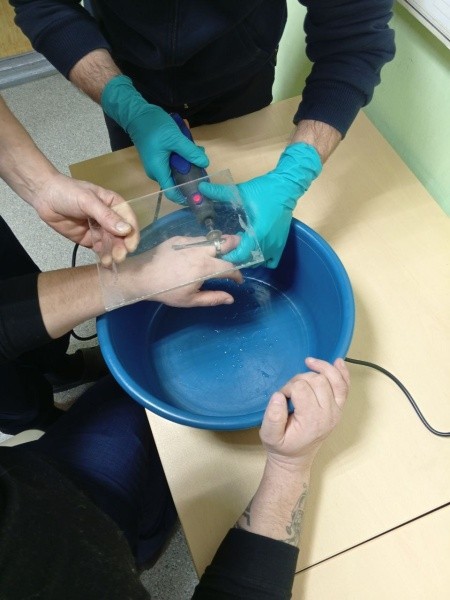 У мужчины под кольцом отек палец. Прибывшие спасатели осторожно распилили украшение с помощью гравера и освободили палец.