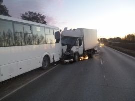 В группе по пропаганде безопасности дородного движения УГИБДД МВД по Марий Эл рассказали, что неподалеку от поселка Юбилейный на 26-м километре автодороги Йошкар-Ола – Уржум произошло ДТП. По предварительным данным, водитель грузовой "Газели" не выбрал безопасную скорость, подъехал слишком близко к движущемуся впереди транспорту, и, не успев вовремя остановить машину, совершил столкновение с пассажирским автобусом.