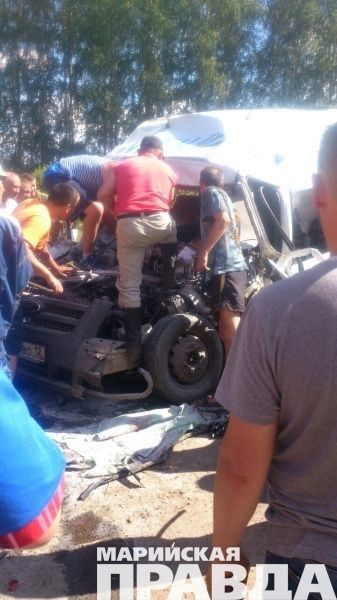 Полное количество  человек находилось в рейсовом автобусе "Форд Транзит" ехавшем по маршруту «Йошкар-Ола – Мари-Турек», пока неизвестно на данный момент. Сейчас на месте работают сотрудники ГИБДД и спасатели.