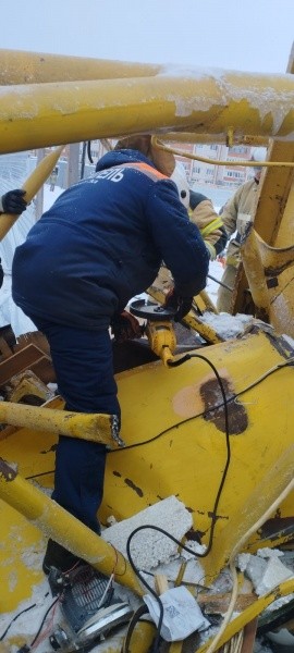 Спасателям сообщили о том, что крановщик заблокирован в кабине упавшего крана. Сотрудники МАСС при помощи гидравлического аварийно-спасательного инструмента, электрического и ручного инструмента деблокировали тело погибшего крановщика.