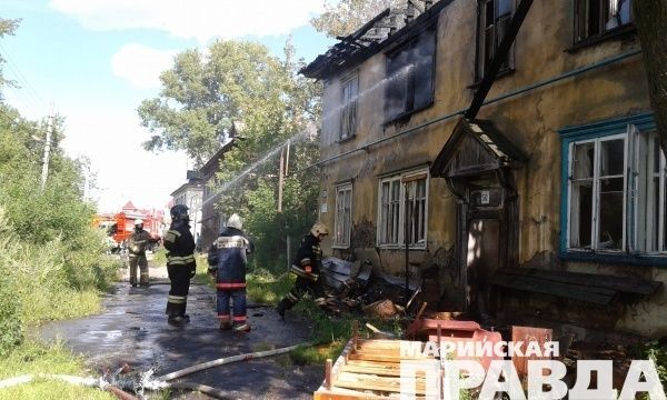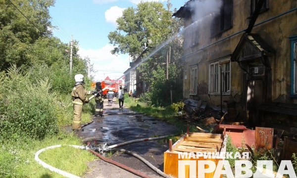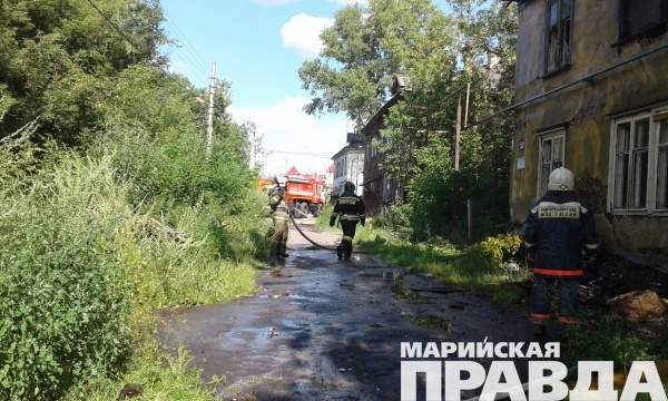 Сейчас в Йошкар-Оле на Красноармейской слободе горит дом. Пожарные тушат 2-этажный барак на улице Красноармейская Слобода, 50. По словам очевидцев горел второй этаж, где проживал хозяин одной из квартир. Его не было дома.