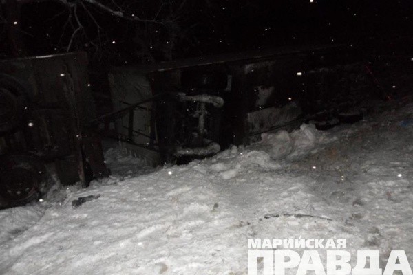 - Вечером 23 декабря в Оршанском районе Марий Эл произошло ДТП. По предварительным данным, на 119-м километре автодороги «Вятка» 19-летний водитель «двенадцатой» (ВАЗ-2112) решил обогнать КАМАЗ с прицепом. Однако не принял во внимание сложные дорожные условия. Во время обгона он не совладал с автомобилем и столкнулся с КАМАЗом. После этого КАМАЗ врезался в иномарку «Хенде» (Hyundai), которая двигалась навстречу. Пострадали водитель и пассажир «двенадцатой», они госпитализированы, - сообщает группа по пропаганде безопасности дорожного движения УГИБДД МВД по Марий Эл.