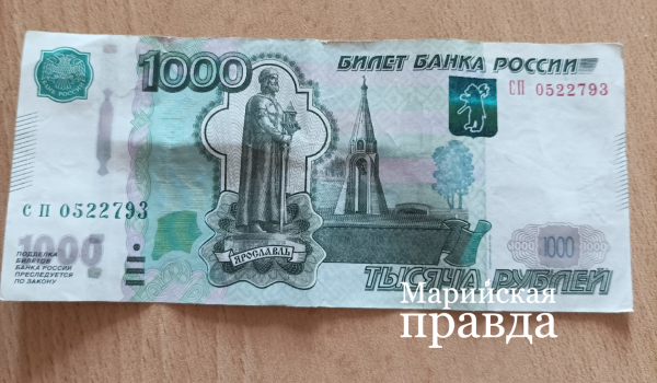 В банке Йошкар-Олы обнаружили фальшивую купюру номиналом 1000 рублей
