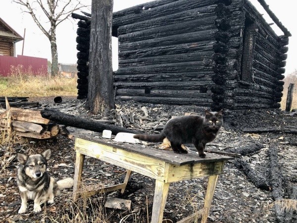 Хозяина дом на момент происшествия не было. Когда рассвело, на пепелище сотрудники МЧС увидели домашних питомцев, которые не пострадали, но остались без крова, ведь дом сгорел полностью.