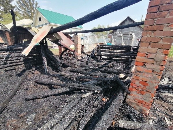 В 00:55 жители деревни Рябиновка заметили языки пламени – горел сарай, расположенный на территории частного хозяйства, и пламя уже перекинулось на баню.