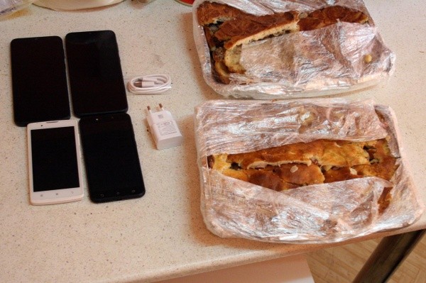 Выпечка показалась сотрудникам подозрительной, потому что содержала нетипичные уплотнения. Пироги разрезали и нашли внутри гаджеты. Причем, мобильники были буквально запечены в пирог, так как корочка была цельной. Проверка показала, что на работоспособность телефонов экстремальные температуры не повлияли.
