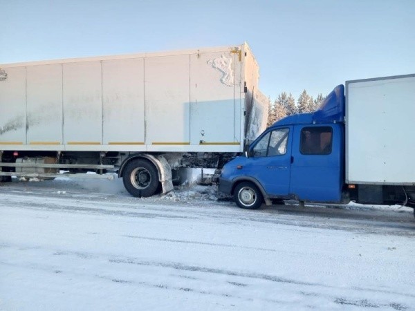 Сегодня, 22 января, на автодороге в Мари-Турекском районе Марий Эл произошло ДТП с участием двух грузовых машин.