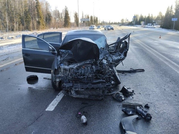 Сегодня около 6 часов утра в Советском районе на 40 км автодороги Йошкар-Ола – Уржум столкнулись Volkswagen и автобус.