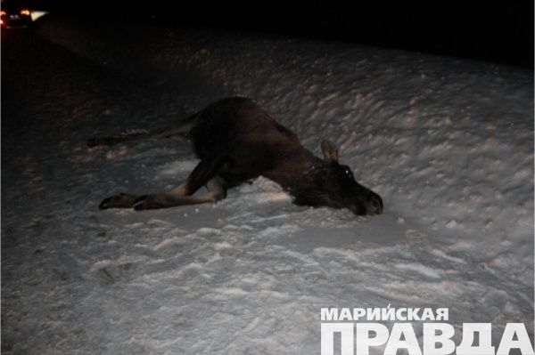 - ДТП произошло в Звениговском районе Марий Эл вечером 5 января. На 56-м километре автодороги «Вятка» 26-летний парень за рулем автомобиля БМВ (BMW) столкнулся с лосем, который внезапно выскочил на дорогу перед иномаркой. От удара животное погибло, водитель и его пассажирка получили травмы и были доставлены в больницу, - сообщает группа по пропаганде безопасности дорожного движения УГИБДД МВД по Марий Эл.