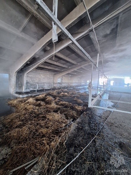Работники одной из ферм проводили сварочные работы в помещении для содержания телят. Около 10:20 они заметили, что в здании начался пожар. Мужчины попытались потушить пожар самостоятельно, огнетушители и ведра с водой оказались под рукой. Но усилия оказались напрасными, поэтому пришлось обращаться за помощью к профессионалам.
